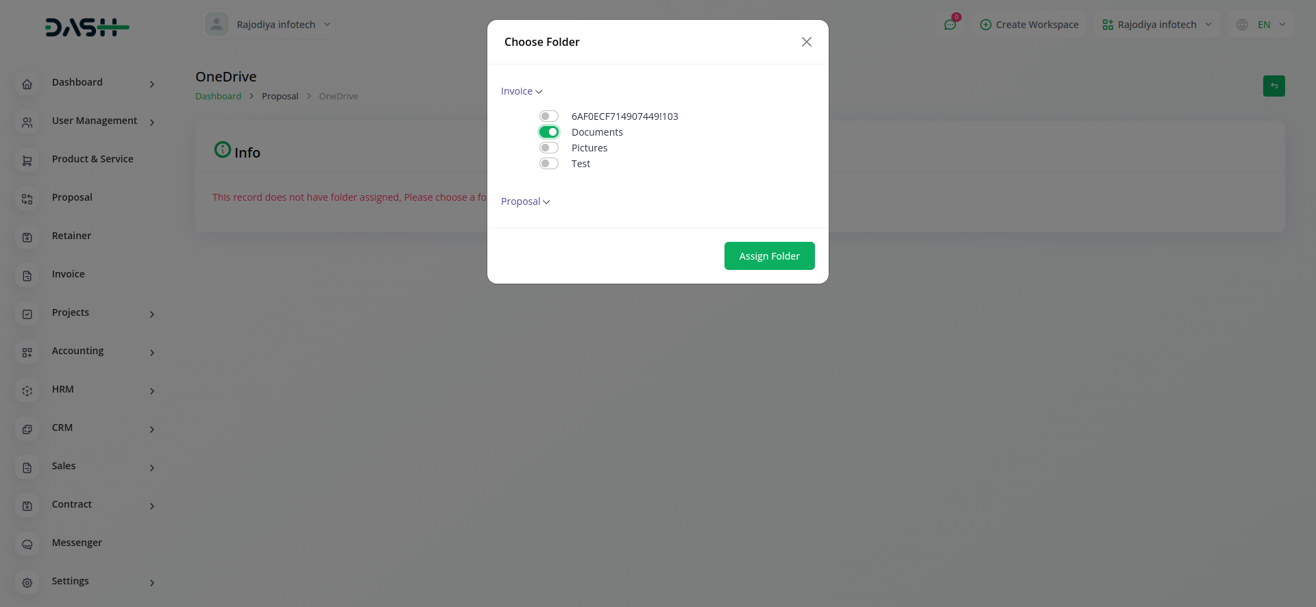 Unleash the full potential of collaboration and organization with our groundbreaking feature – the ability to seamlessly link OneDrive folders with submodules. With this innovative enhancement, Workdo-dash empowers you to synchronize your OneDrive documents with specific submodules, ensuring that your files are precisely where you need them. Whether you're managing projects, tasks, or any other submodule, this feature lets you effortlessly integrate your essential documents, images, and files.